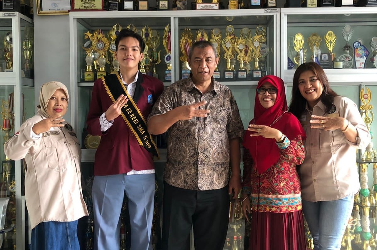Jelang pengukuhan di Surabaya, calon duta Eco Enzyme dari Kaltim Kevin Fransiskus Manik berpamitan dengan para guru. (Foto/ist)