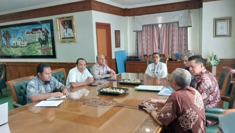 Bupati Ardiansyah saat audiensi dengan Senior Manager Perizinan, Pertanahan, dan Komunikasi UIP Kalbagtim Basuki Rahman beserta rombongan. (Foto/ist)
