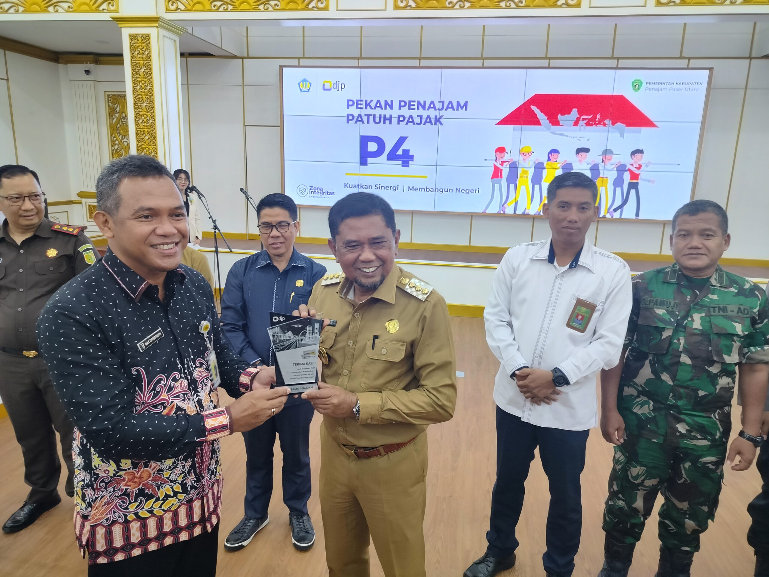 Penghargaan itu diserahkan langsung oleh Bupati PPU Hamdam dan Kepala Kanwil DJP Kalimantan Timur dan Utara (Kaltimtara), Max Darmawan pada Pekan Penajam Patuh Pajak yang digelar di Aula Lantai 3 Kantor Bupati PPU, 13 Februari 2023.