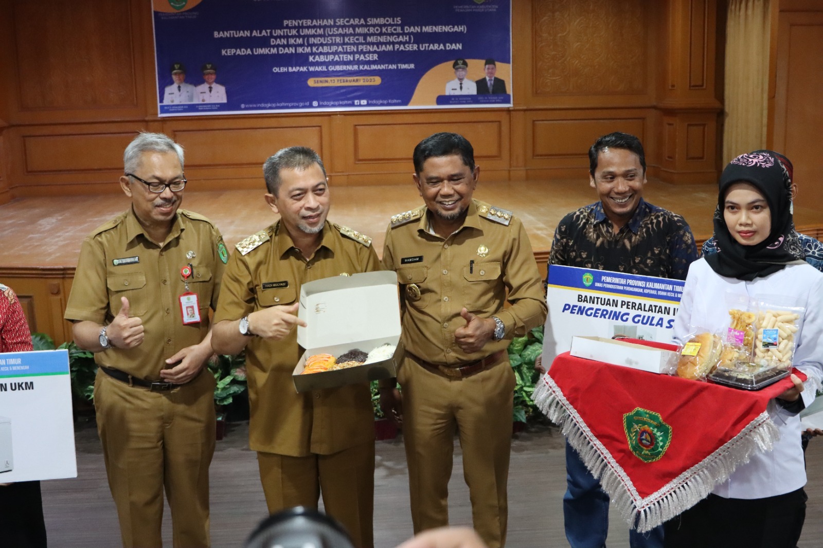 Insightkaltim.com, PENAJAM – Wakil Gubernur (Wagub) Kalimantan Timur (Kaltim), Hadi Mulyadi menyerahkan bantuan sebanyak 129 unit peralatan kepada 15 Usaha Mikro Kecil dan Menengah (UMKM) Penajam Paser Utara (PPU) dan 21 unit peralatan kepada 14 Industri Kecil Menengah (IKM) Penajam Paser Utara, dan 14 unit peralatan kepada 7 UMKM Paser. Penyerahan dilakukan secara simbolis di aula lantai I Kantor Bupati PPU, Senin (13/02/2023) siang.
