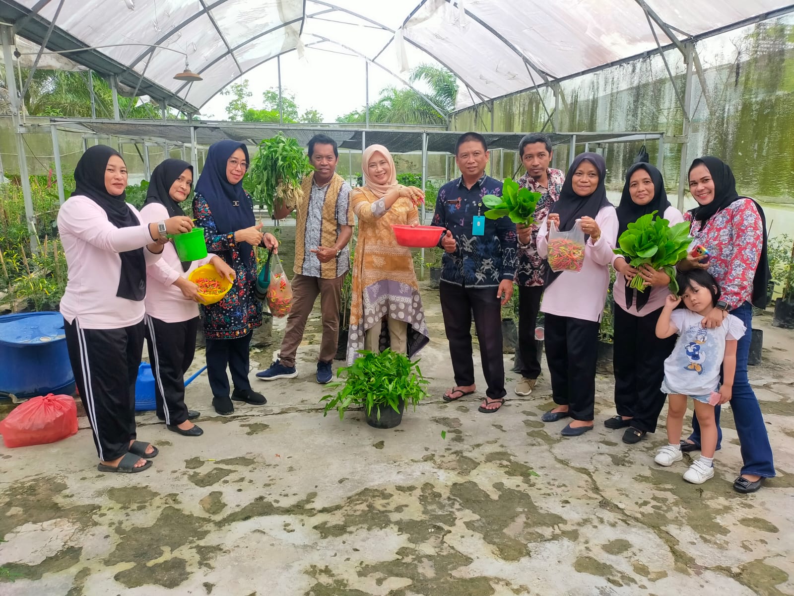 Dalam kegiatan panen bersama ini tampak sejumlah sayur mayur telah dikembangkan. seperti kangkung, cabai, sawi, bayam, terong dan sebagainya. Ketua TP PKK dan sejumlah instansi terkait turut dalam kegiatan panen bersama ini.