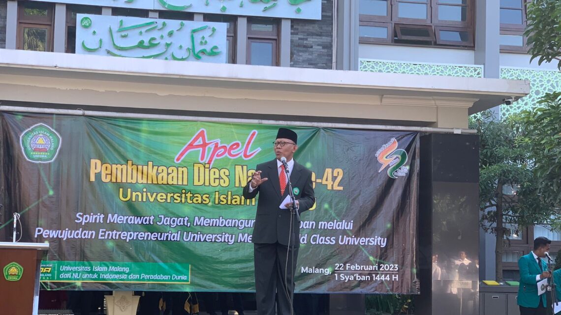 Insightkaltim.com, MALANG – Universitas Islam Malang menggelar apel dalam rangka Dies Natalis ke-42 yang mengusung tema Spirit Merawat Jagat, Membangun Peradaban melalui Perwujudan Entrepreneurial University Menuju World Class University”, (22/2).