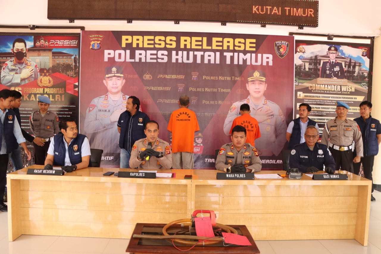 Hal tersebut terkuak dalam press release yang dilaksanakan oleh Satreskrim Polres Kutim di koridor depan Mapolres Kutim dipimpin oleh Kapolres Kutim AKBP Ronny Bonic didampingi oleh Kasatreskrim Iptu I Made Jata Wiranegara dan juga pejabat utama Polres Kutim.