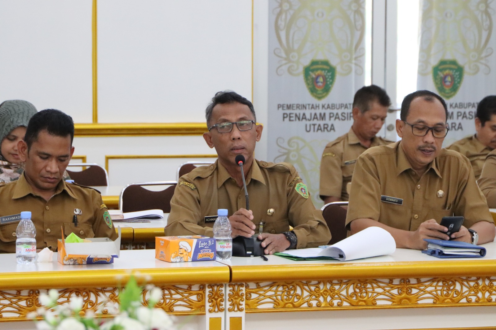 Rapat dipimpin Balsadia Permina Pangkung, Perencana Ahli Muda Bagian Pembangunan Sekretariat Daerah (Setda) PPU. Selain itu, hadir narasumber, Kepala Bagian (Kabag) Pengadaan Barang dan Jasa Setda PPU Iwan Kadir Yatim dan Penyuluh Industri Ahli Muda Muhammad Sabil mewakili Kepala Dinas Koperasi UKM Perindustrian dan Perdagangan (KUKM Perindag) PPU. Kegiatan ini dihadiri oleh Tim Peningkatan Penggunaan Produk Dalam Negeri (P3DN) PPU.