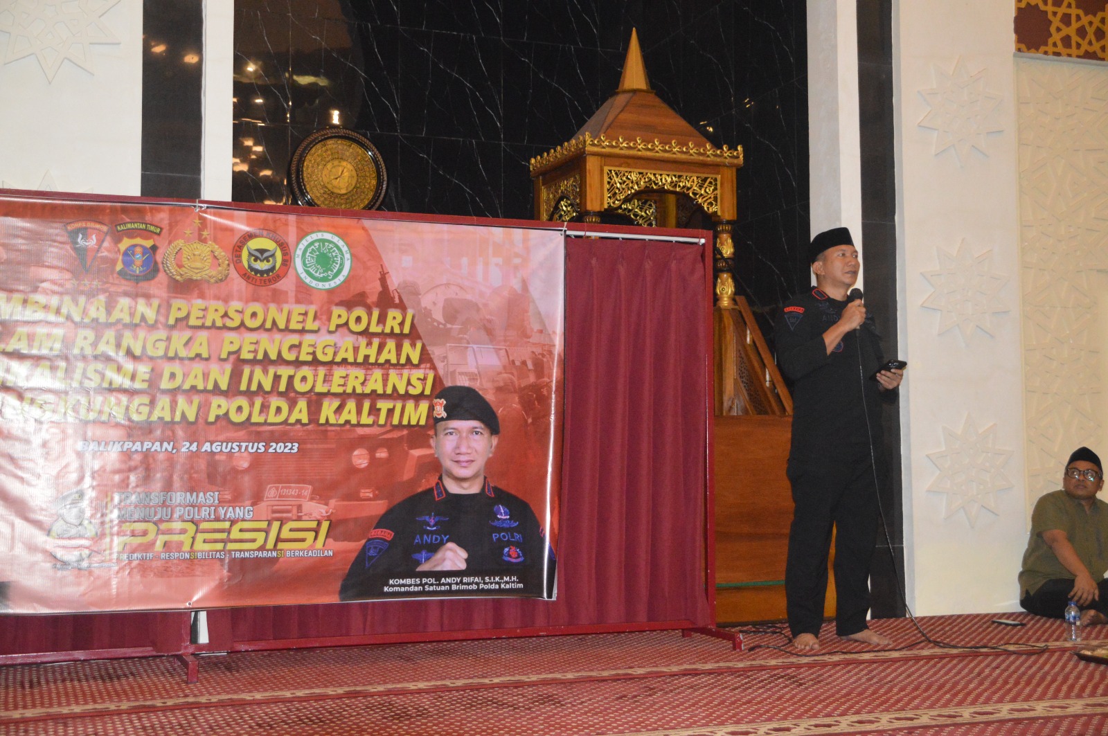 Insightkaltim.com, Balikpapan, Polda Kaltim menggelar acara pembinaan personel polri dalam rangka pencegahan radikalisme dan intoleransi di lingkungan Polda Kaltim yang dibuka langsung oleh Dansat Brimob Polda Kaltim Kombes Pol. Andy Rifai, S.I.K.,M.H. , Kamis (24/08/2023).