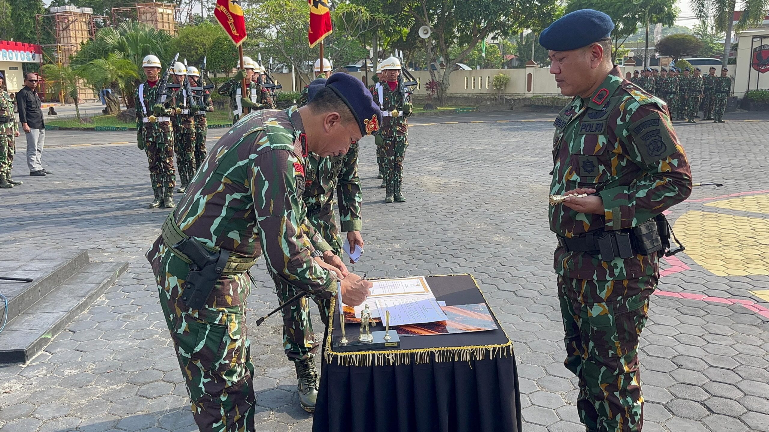 Upacara pengukuhan Danyon A dan Danyon B Satbrimobda Polda Kaltim. (Foto/ist)