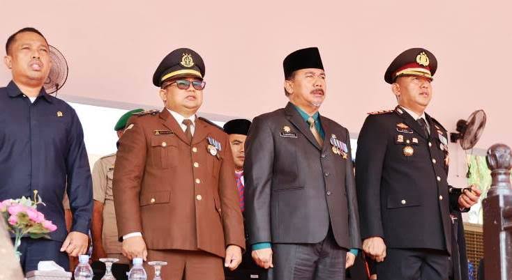 Sekda Kukar beserta unsur Forkopimda menghadiri Upacara Peringatan HUT TNI ke – 78 Tahun 2023, Kamis (5/10) di Halaman Kantor Bupati Kukar. (Foto/ist)