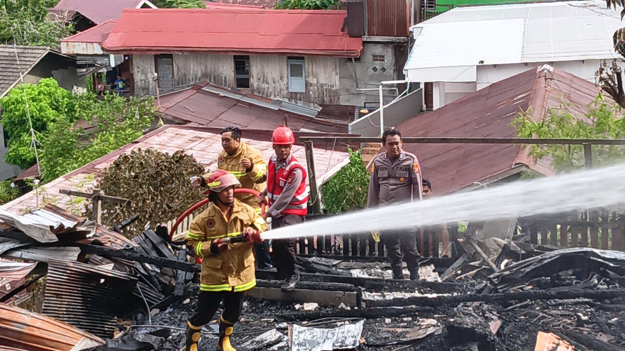 Kebakaran yang diperkirakan terjadi pukul 14.00 Wita ini melalap sebuah bangunan rumah semi permanen milik ketua RT setempat, Sri.