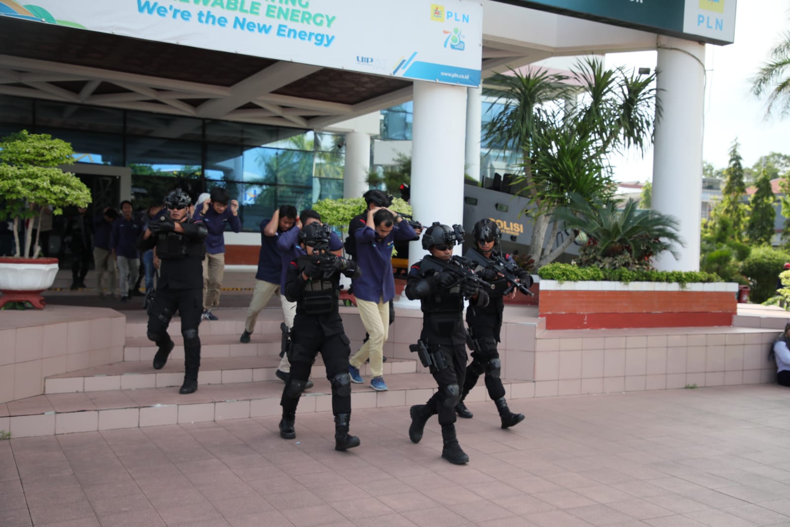 Insightkaltim.com, Balikpapan – Detasemen Gegana Satuan Brimob Polda Kaltim sukses melaksanakan simulasi anti-teror dan penyanderaan bersama PT. PLN PERSERO UIP KALBAGTIM dan PT. PLN PERSERO UID KALTIMTARA. Simulasi ini berfokus di Halaman Objek Vital PLN yang merupakan prioritas pemerintah dalam upaya mengantisipasi potensi kejadian teror yang dapat mengancam keamanan masyarakat.
