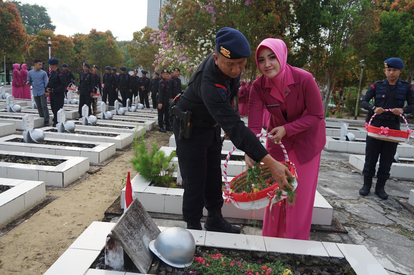 Upacara ziarah dipimpin langsung Komandan Satuan Brimob Polda Kaltim Kombes Pol. Andy Rifai, S.I.K., M.H., diikuti seluruh PJU Satbrimob, Bhayangkari cabang Satbrimobda Kaltim, personel dari Pasukan II Brimob dan Personel Satbrimob Polda Kaltim.