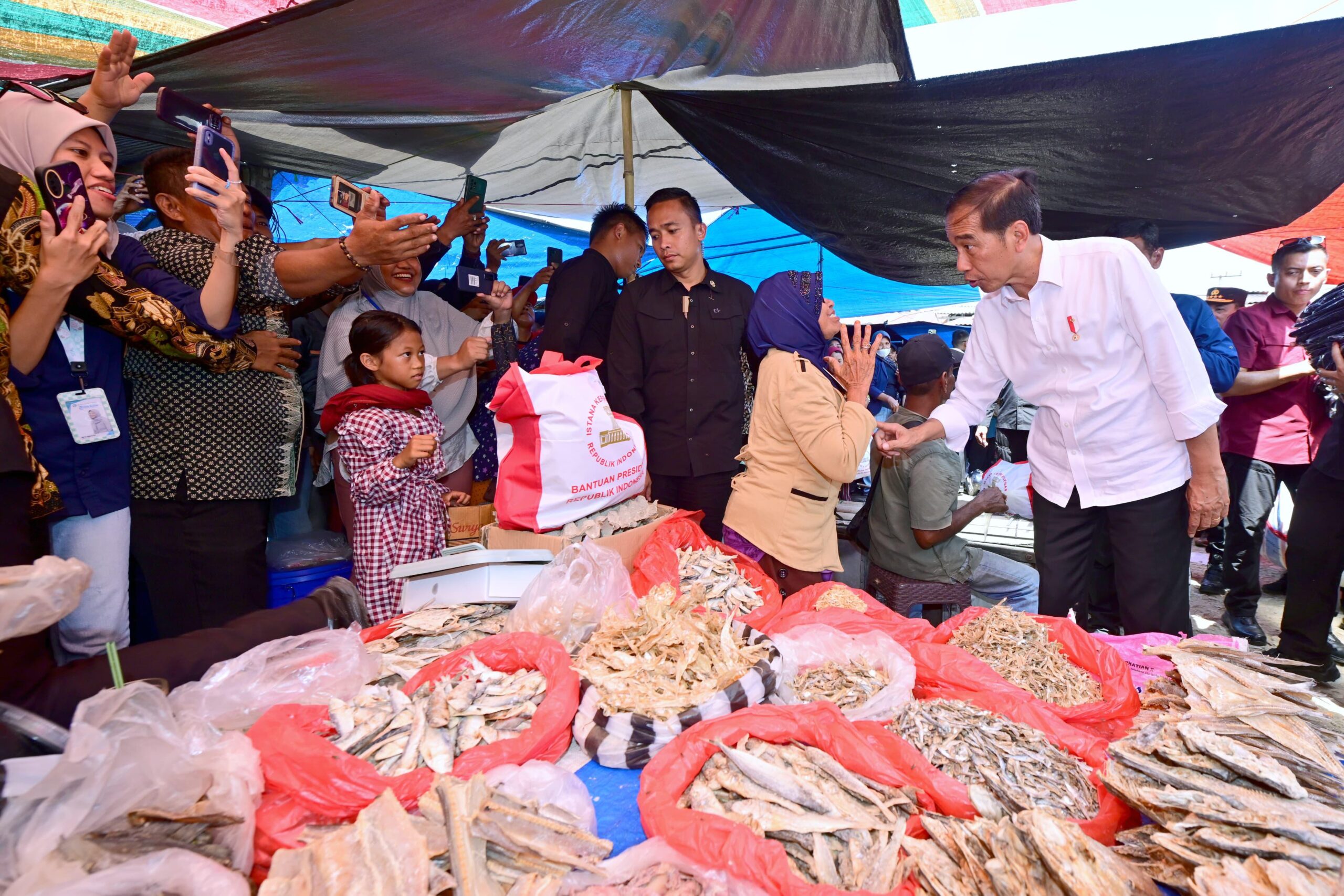 Selama kunjungannya, Presiden tak hanya meninjau, tetapi juga turut berinteraksi dengan pedagang dan warga setempat. Beliau bahkan memberikan bantuan berupa sembako kepada beberapa pedagang. Saat berbelanja, Presiden terlihat membeli produk dari pedagang tahu lokal, Warni, yang dengan kagum menerima pembelian lima bungkus tahu dengan uang sejumlah Rp 200 ribu.