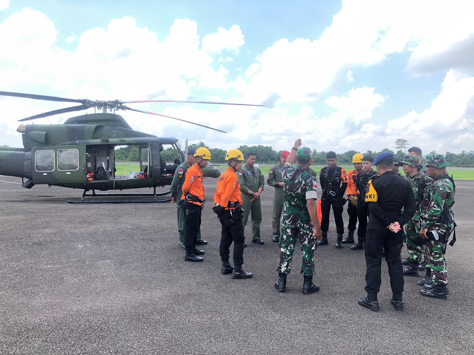 Tim pencarian melalui jalur udara, menggunakan Hely Bell 412 BKO Koopsdam VI/Mlw, melakukan latihan refueling sebelum bergeser menuju Binuang pada pukul 12.15 WITA.