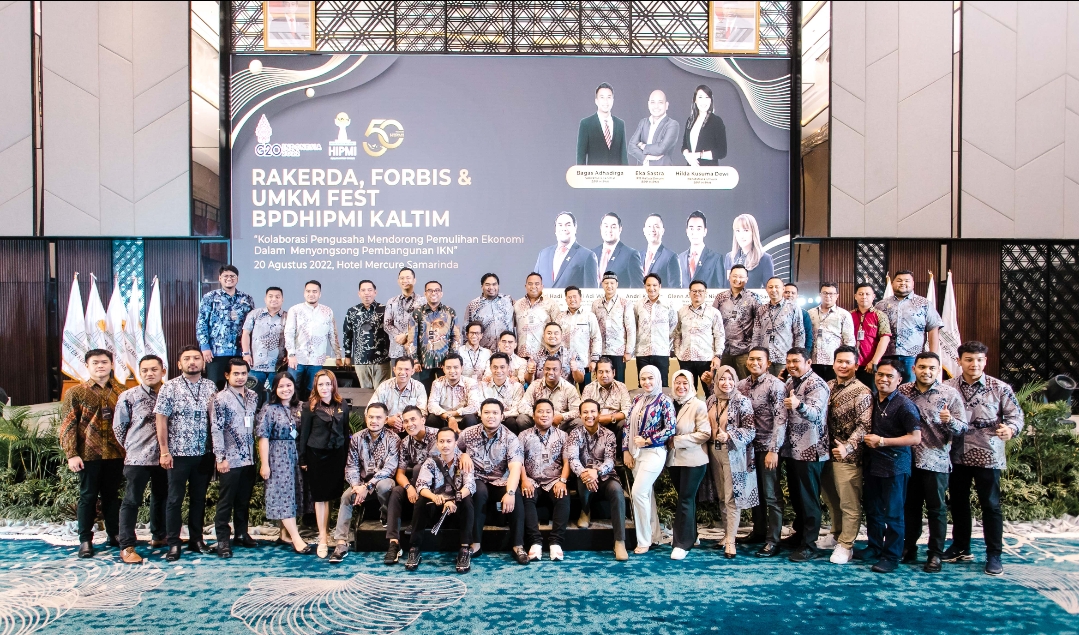 Momen pengurus HIPMI Kaltim abadikan momen bersama. (Foto/ist)