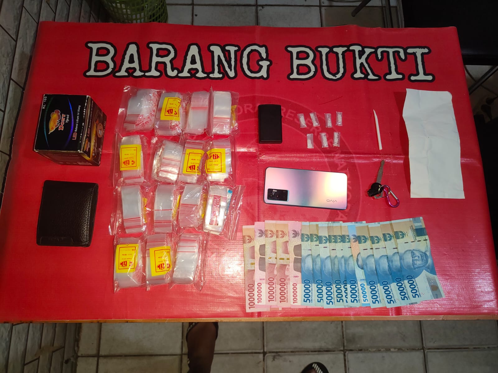 “Dalam penggeledahan yang disaksikan oleh petugas security setempat, anggota Sat Resnarkoba berhasil menemukan sejumlah barang bukti yang mencurigakan,” ujar AKP Suradi. Barang bukti tersebut termasuk tujuh paket plastik klip berisi serbuk kristal warna putih yang diduga sebagai narkotika jenis shabu, serta beberapa barang terlarang lainnya.