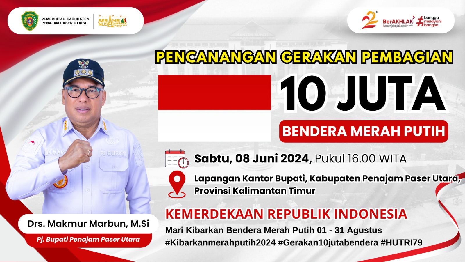 Insightkaltim.com, **Penajam Paser Utara (PPU) –** Pemerintah Kabupaten Penajam Paser Utara (PPU) siap menyukseskan Gerakan Pembagian 10 Juta Bendera Merah Putih 2024. Kegiatan ini bertujuan meningkatkan semangat nasionalisme dan rasa cinta tanah air di kalangan masyarakat Indonesia. Acara pencanangan akan dimulai pada 1 Juni dan berlangsung hingga 17 Agustus 2024. Pembukaan resmi akan dihadiri oleh Menteri Dalam Negeri Republik Indonesia.