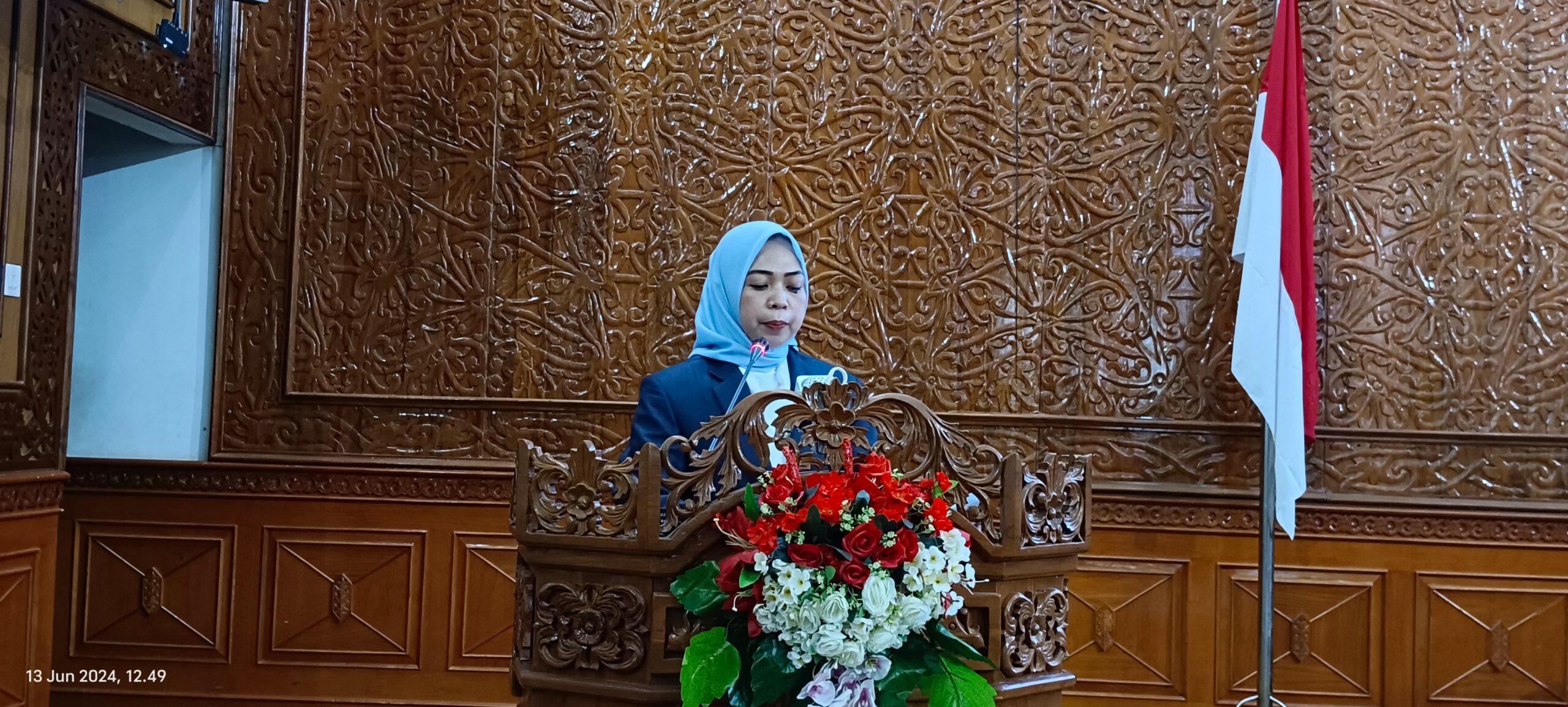 Dalam penyampaiannya, Hj. Mulyana menjelaskan dasar hukum nota penjelasan Raperda tentang Pertanggungjawaban Pelaksanaan APBD.