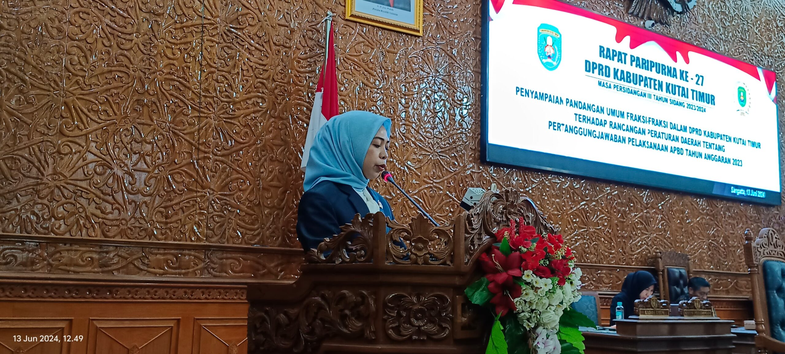 Sidang yang dipimpin oleh Ketua DPRD Kutim, Jonni, pada Kamis (13/06/2024), dihadiri oleh Bupati Kutim yang diwakili oleh Asisten III, Sudirman Latif, serta 21 anggota dewan dan tamu undangan lainnya.