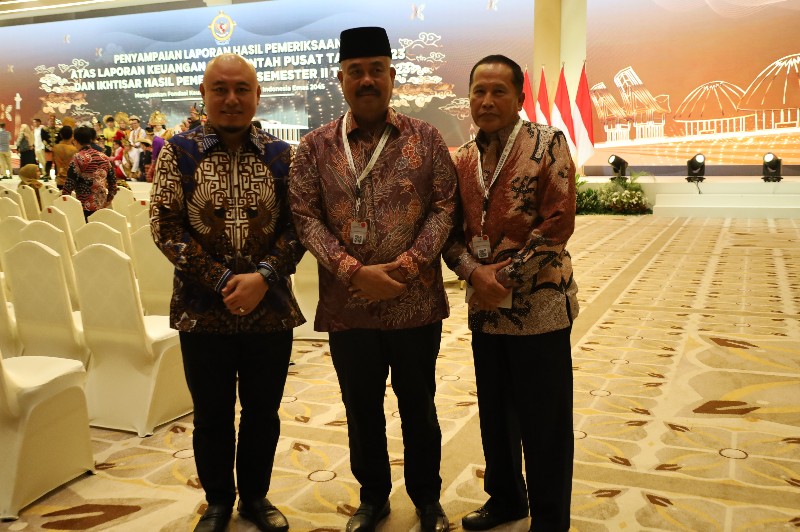 Insightkaltim.com, **TENGGARONG** – Bupati Kutai Kartanegara (Kukar), Edi Damansyah, bersama Ketua DPRD Kukar Abdul Rasid dan Kepala Inspektorat Kukar Heriansyah, hadir dalam acara penyampaian Laporan Hasil Pemeriksaan (LHP) atas Laporan Keuangan Pemerintah Pusat (LKPP) Tahun 2023 oleh Badan Pemeriksa Keuangan RI (BPK RI), Senin (8/7). Acara ini bertema “Menguatkan Pondasi Keuangan Negara Menuju Indonesia Emas 2045”.