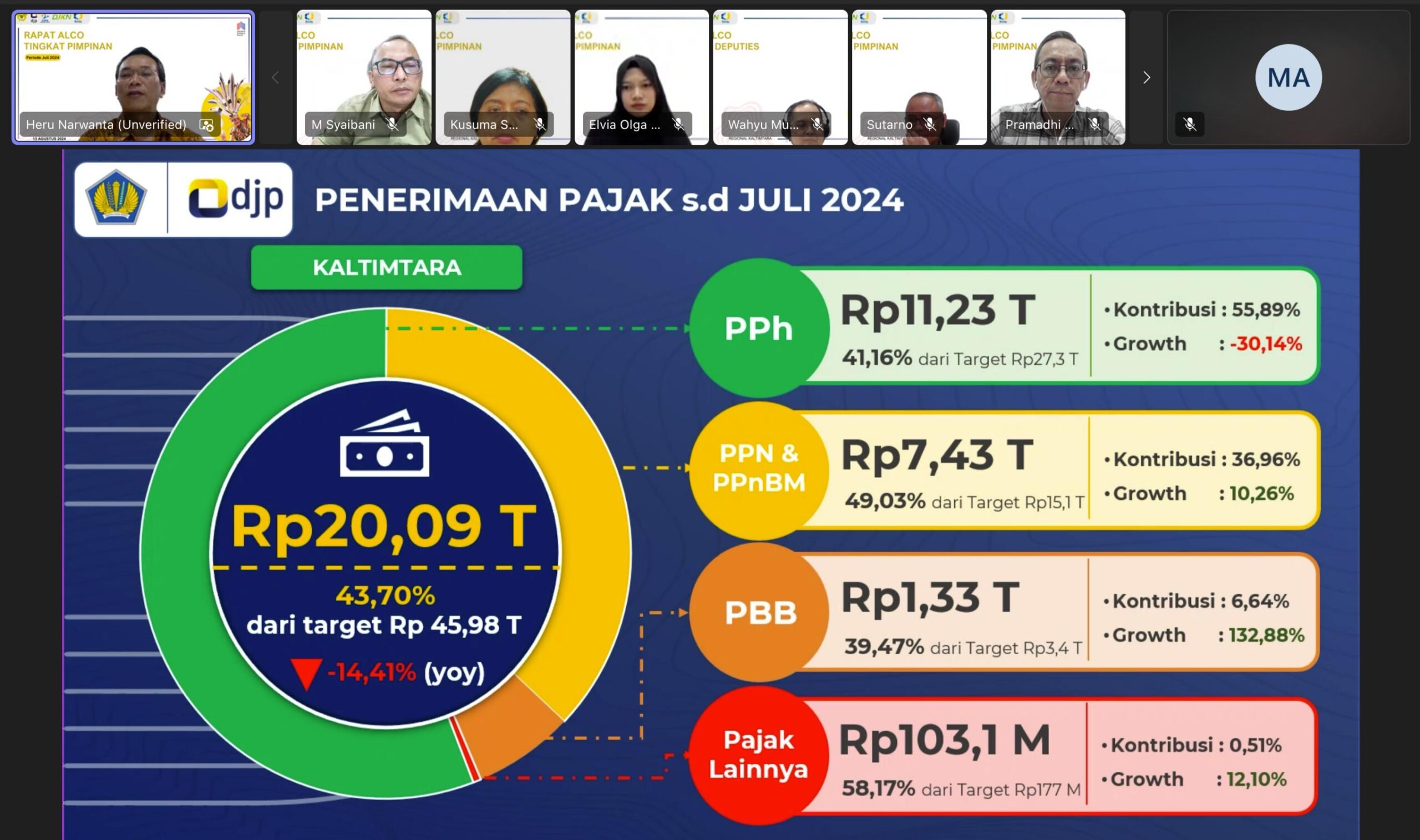 Insightkaltim.com, Balikpapan  – Dalam Rapat Asset Liability Committee (ALCo) Regional Kalimantan Timur dan Utara, seluruh perwakilan unit vertikal Kementerian Keuangan (Kemenkeu) di wilayah Kalimantan Timur dan Kalimantan Utara kembali menggelar rapat koordinasi daring. Pertemuan tersebut bertujuan untuk mengevaluasi perkembangan Anggaran Pendapatan dan Belanja Negara (APBN) di kedua provinsi tersebut selama periode Januari hingga Juli 2024.