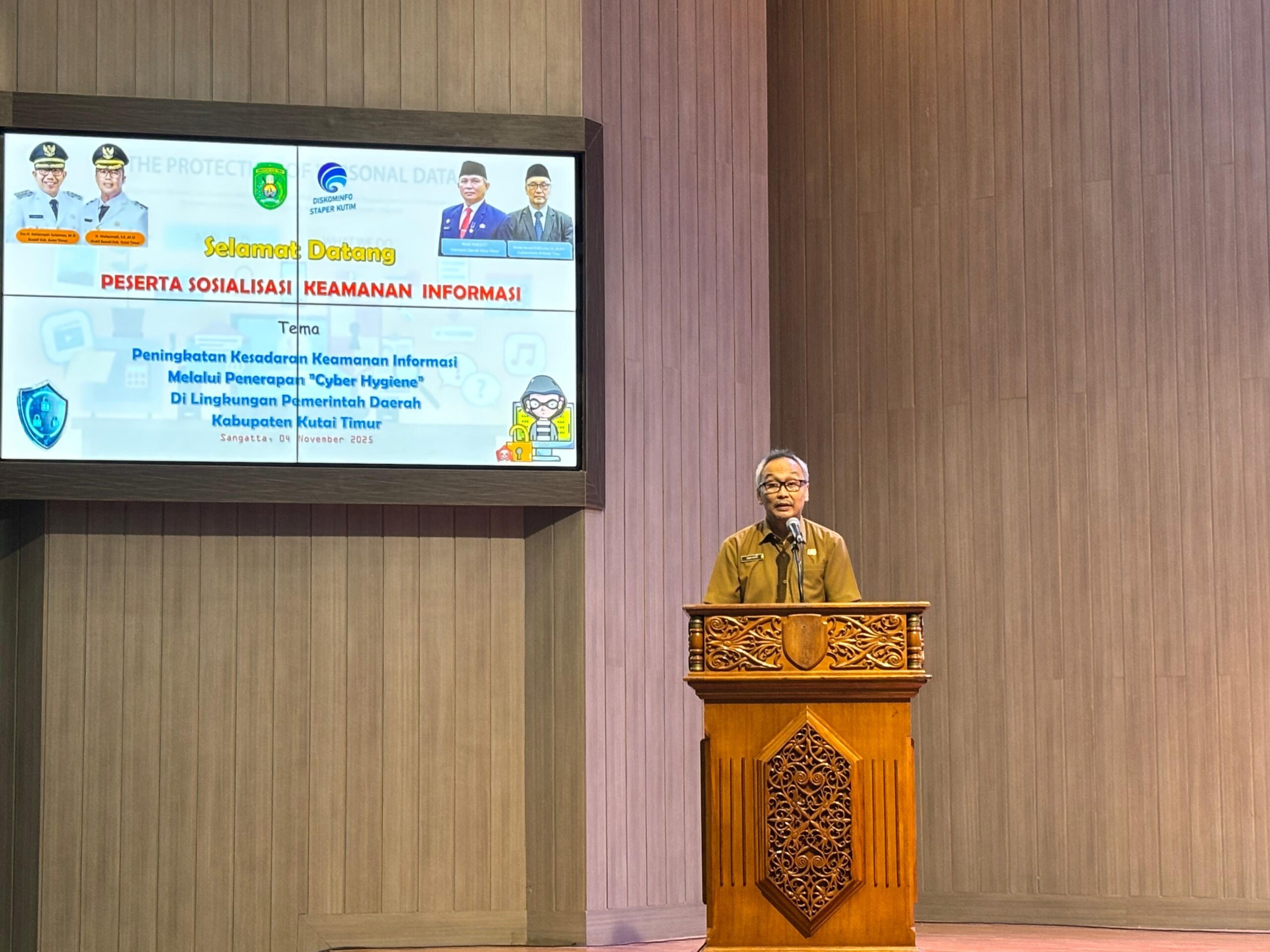 Insightkaltim.com, SANGATTA – Pemerintah Kabupaten Kutai Timur (Kutim) semakin serius memperkuat tameng keamanan digital di tengah maraknya ancaman siber yang menyasar institusi publik. Komitmen tersebut diwujudkan melalui kegiatan Sosialisasi Peningkatan Kesadaran Keamanan Informasi yang digelar Dinas Komunikasi, Informatika, Statistik, dan Persandian (Diskominfo Staper) Kutim, Selasa (5/11/2025) di Ruang Meranti, Kantor Bupati.
